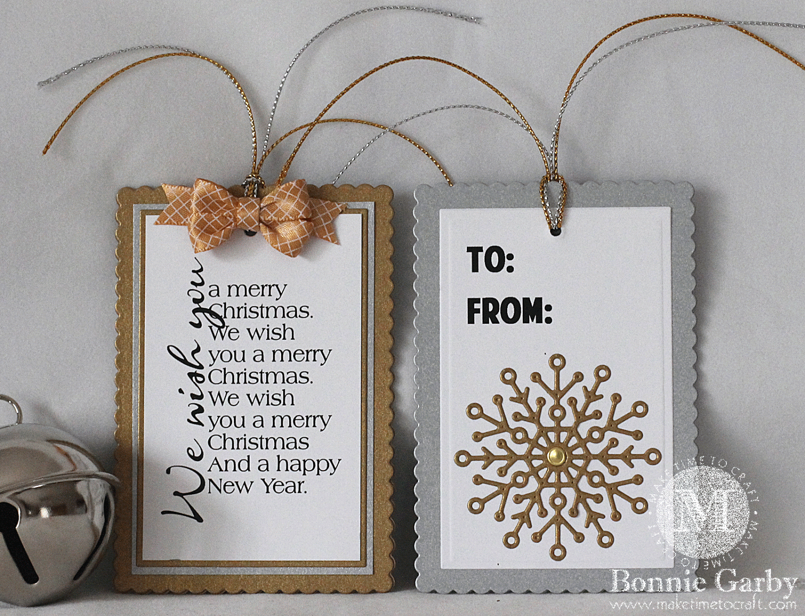 Here is a view of the front and back of a tag.  The back of each has a delicate snowflake die cut from Cheery Lynn Designs along with a to and from area.