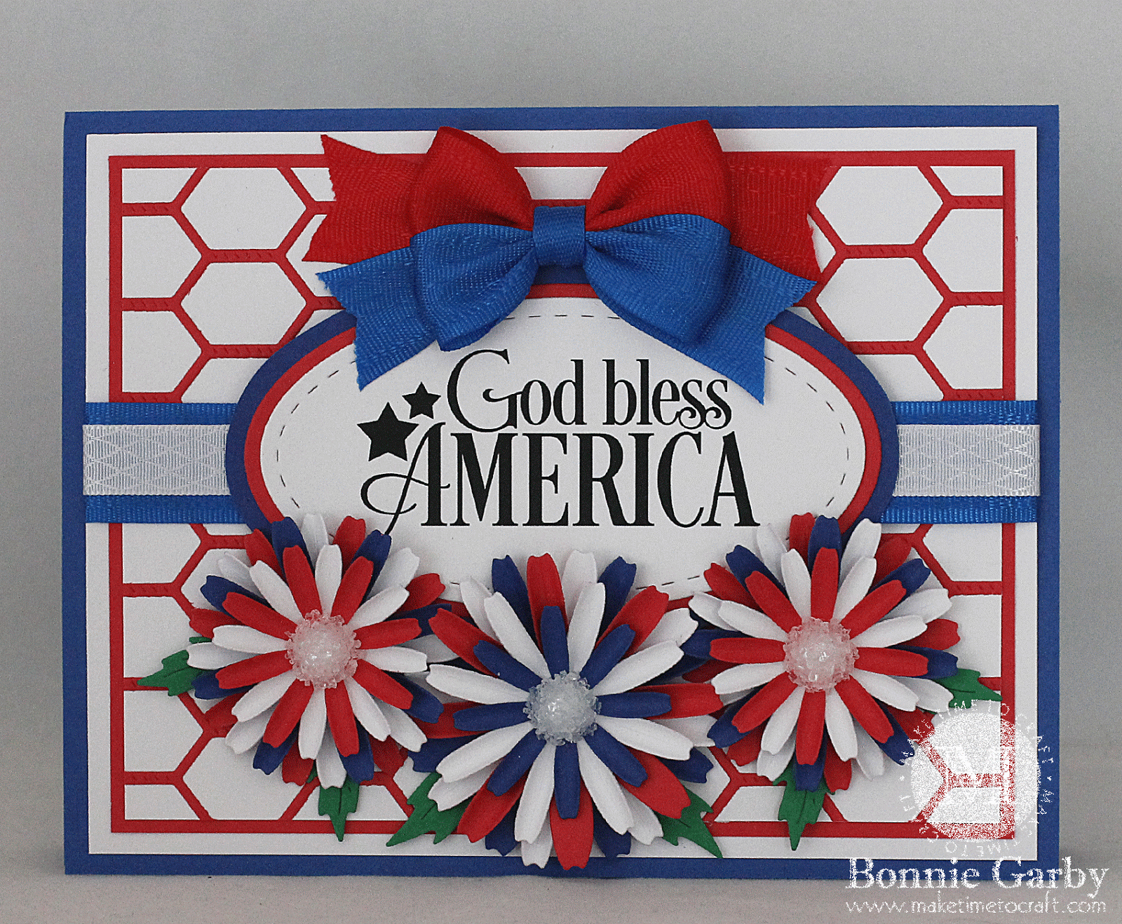 Wonderfully patriotic, Bonnie … such brilliant texture and dimension … the double bow is amazing! Thanks so much for playing along with us at Time Out! Anita 🙂
