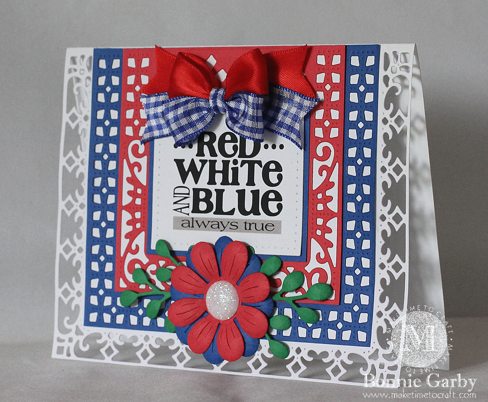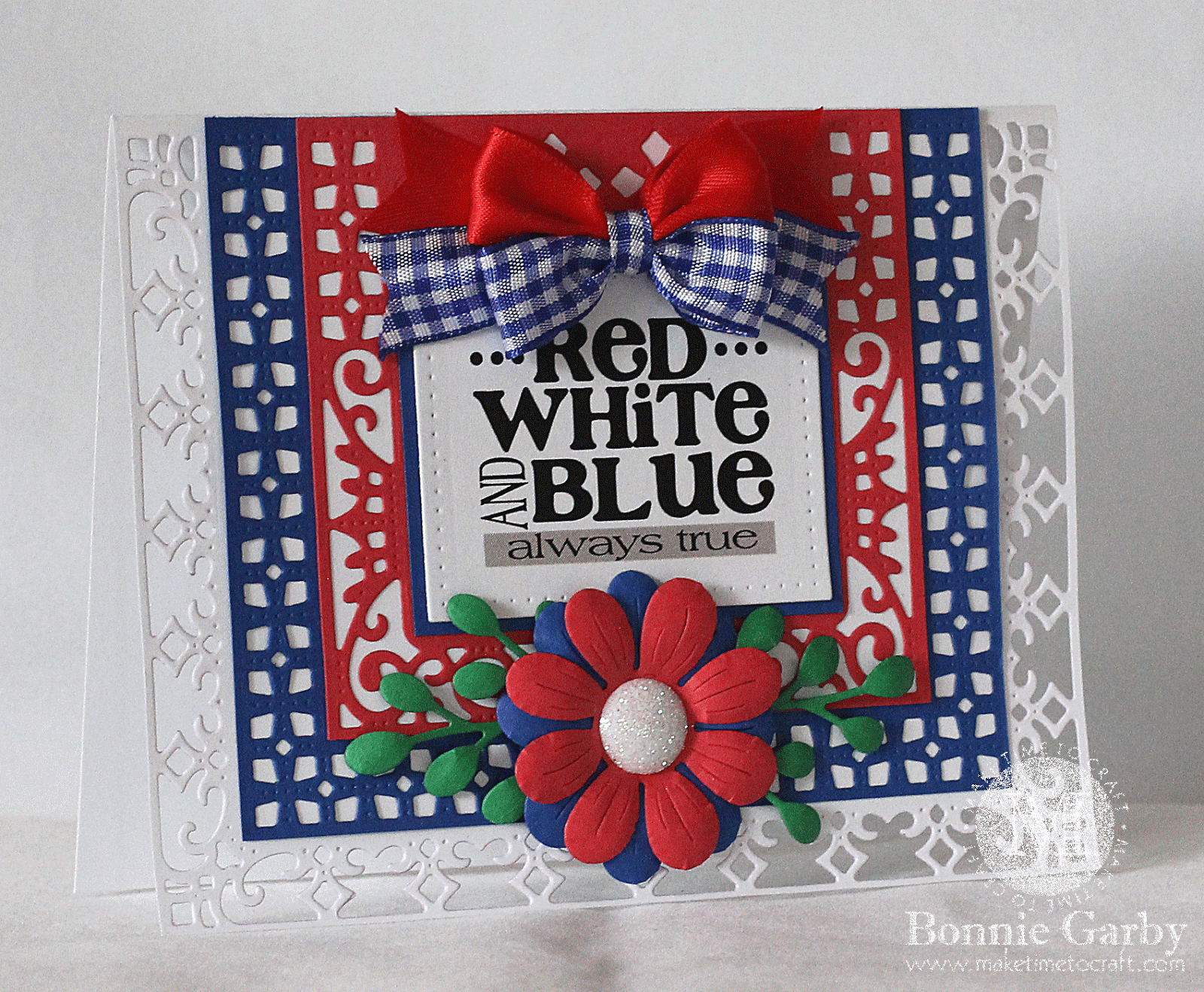 This theme is sooooo my style. Almost all of my cards have lots (and lots) of layers! And also, no – I’m not over my red, white and blue kick just yet. <sorry!>