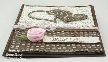 I started with sketch SSS145 from The Sweet Stop Sketch Blog and went from there.  I often don’t know where I’m going when I get started, and it sometimes doesn’t go anywhere good, but I’m pleased with the way this card turned out.  I tried some distressing on this card too which is not exactly in my comfort zone.  Here is a different angle to show the distressing.  I’ll get a little more aggressive with it next time.  😉
