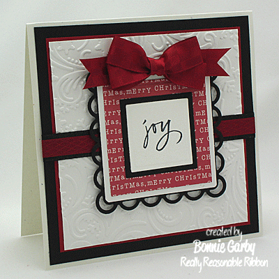 This month the Really Reasonable Ribbon Monthly Ribbon Club Assortment consists of black, charcoal grey and a deep scarlet red. I just love all the rich dark colors. Isn’t it great for the holidays??! You can use the assortment alone or pair it with some of the brighter colors from past assortments to really make a statement.