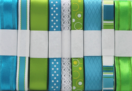 This month the Really Reasonable Ribbon Monthly Ribbon Club Assortment is looking a lot like summer. I just love all the pretty apple green and turquoise ribbons. Isn’t it sizzling….??!