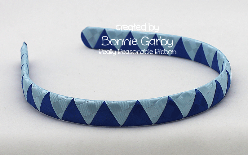 What I love about this Easy Woven Ribbon Headband is that is works beautifully with both 3/8″ and 5/8″ width ribbons. I’ve been wanting to try our Really Reasonable Ribbon’s beautiful textured 5/8″ Satin Ribbons on headbands and now I can.