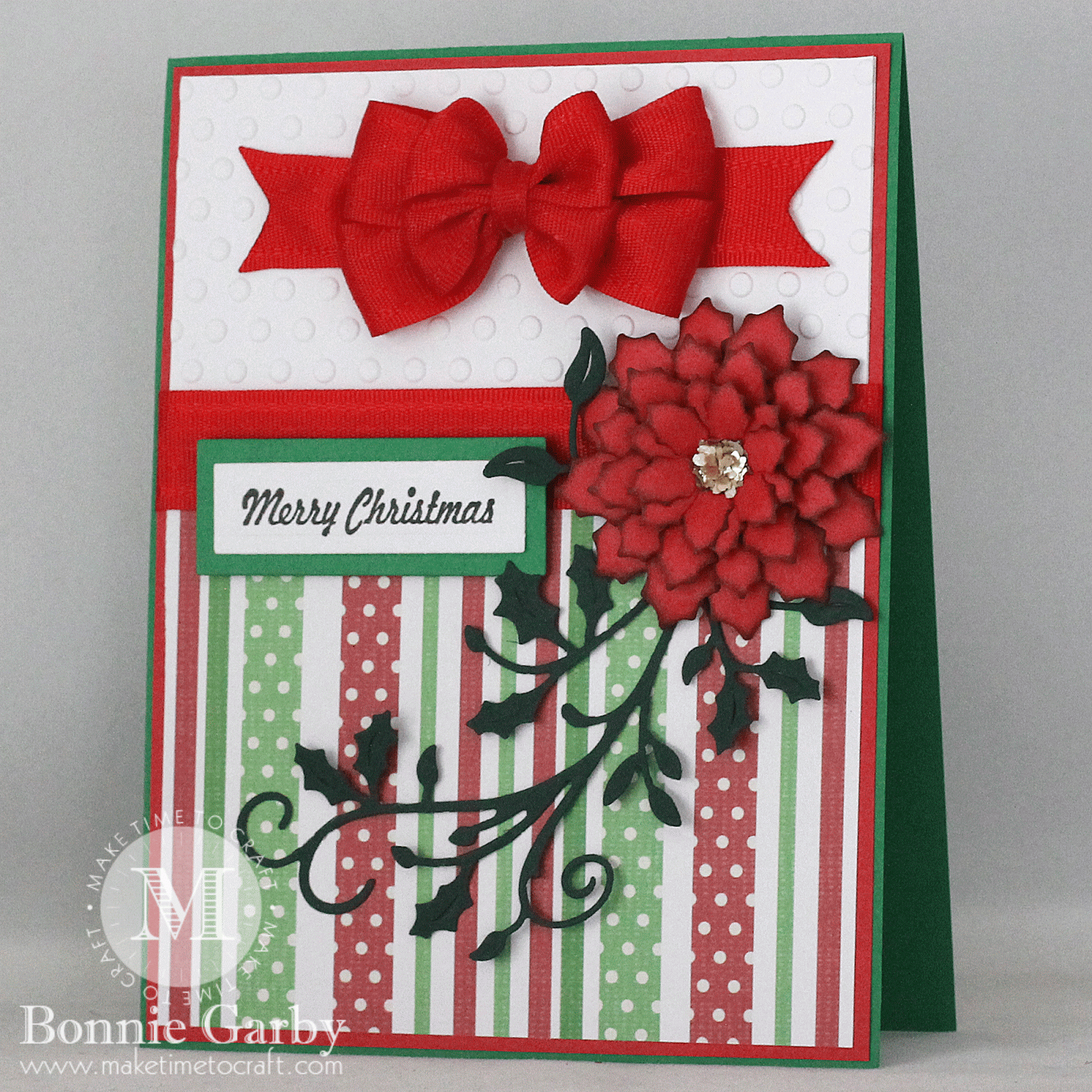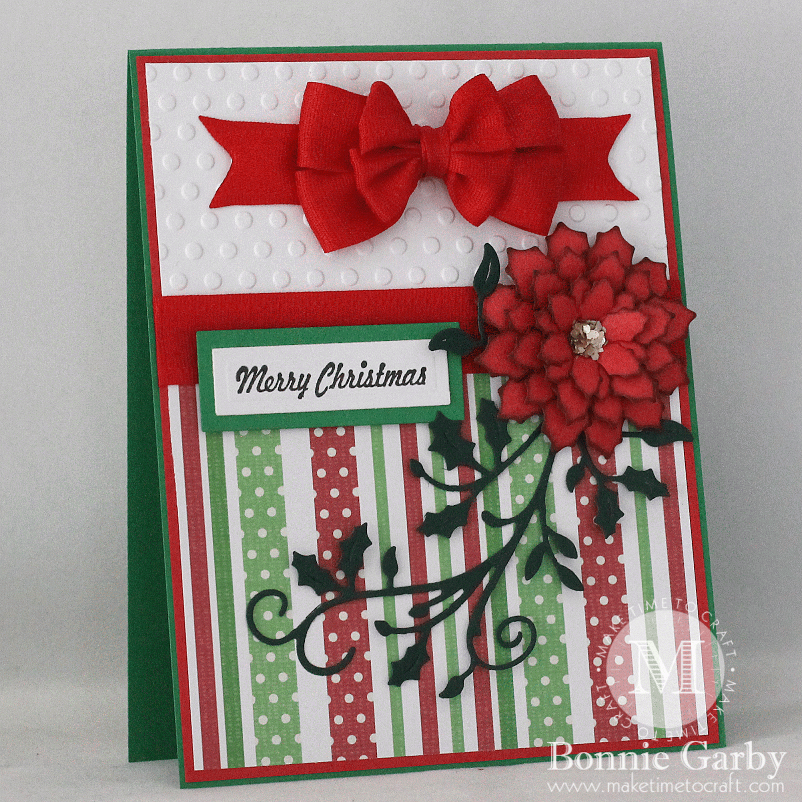 Beautiful card. Love the poinsettia and your beautiful bow. Thanks for joining us at Christmas Card Challenges.