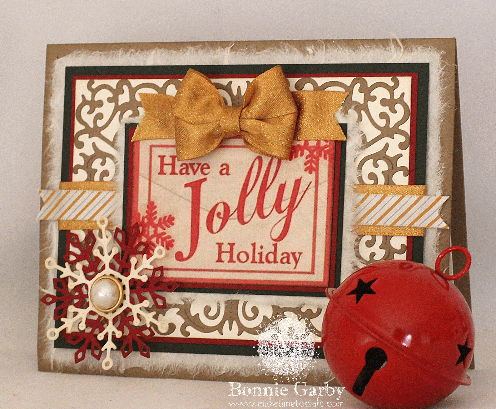 The gold and white and the ribbon and gold bow are gorgeous on this card. The snowflake and beautiful frame around the sentiment are just beautiful.