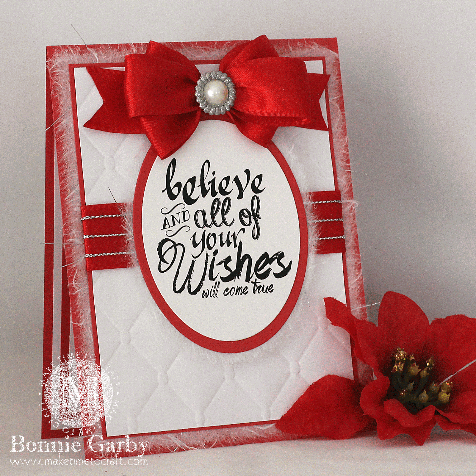 Oh my Bonnie you are a Bow Artista bar non. The red card with the embossing and that lovely layered oval with the sentiment is just so pristine. The bow with the lovely gem is la piece de resistance. Thank you so much for taking time to post your very creative art with us this week at Word Art Wednesday in our 213th FF AG challenge! Advent Blessings, Carole