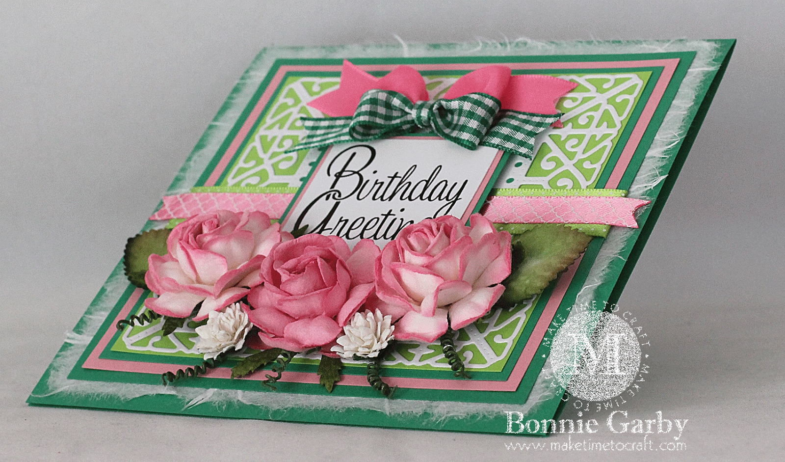 Hi Bonnie – I like the pink and green together in your mountain fold card and the head band is a delight – TFS