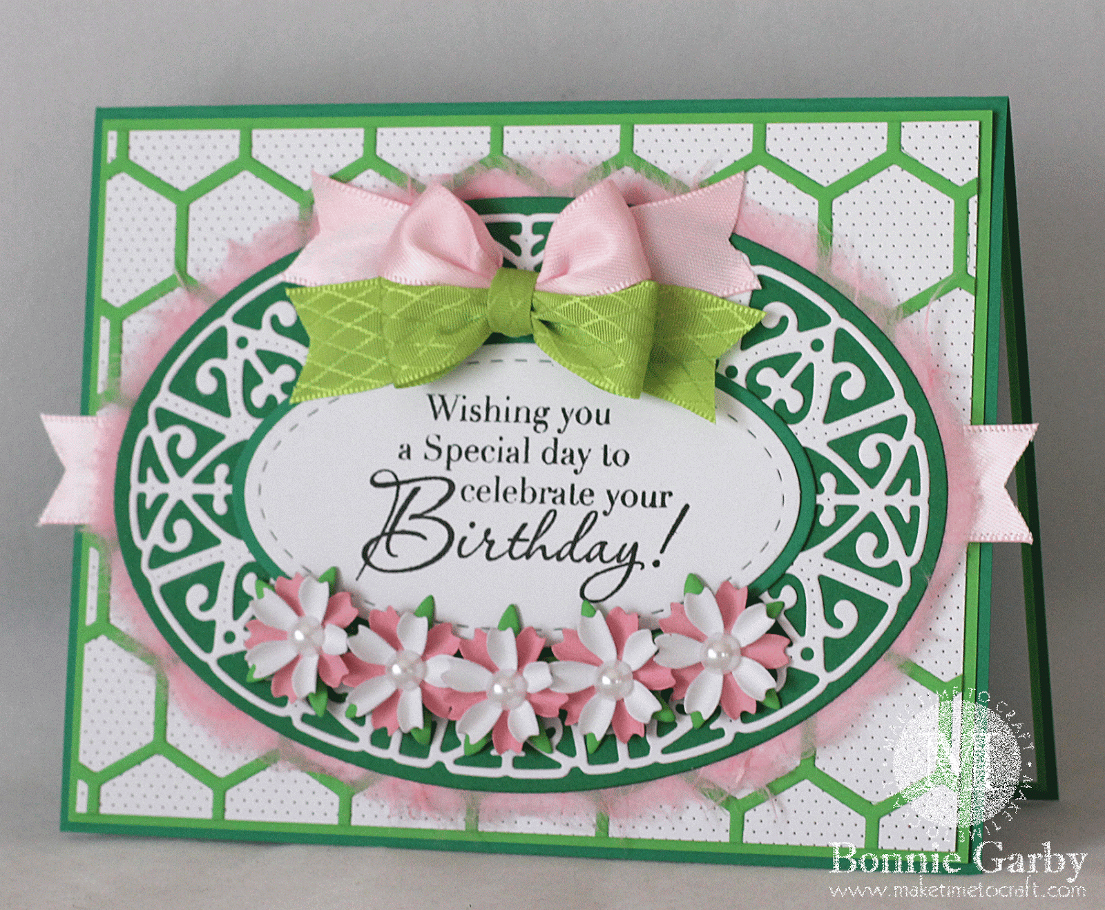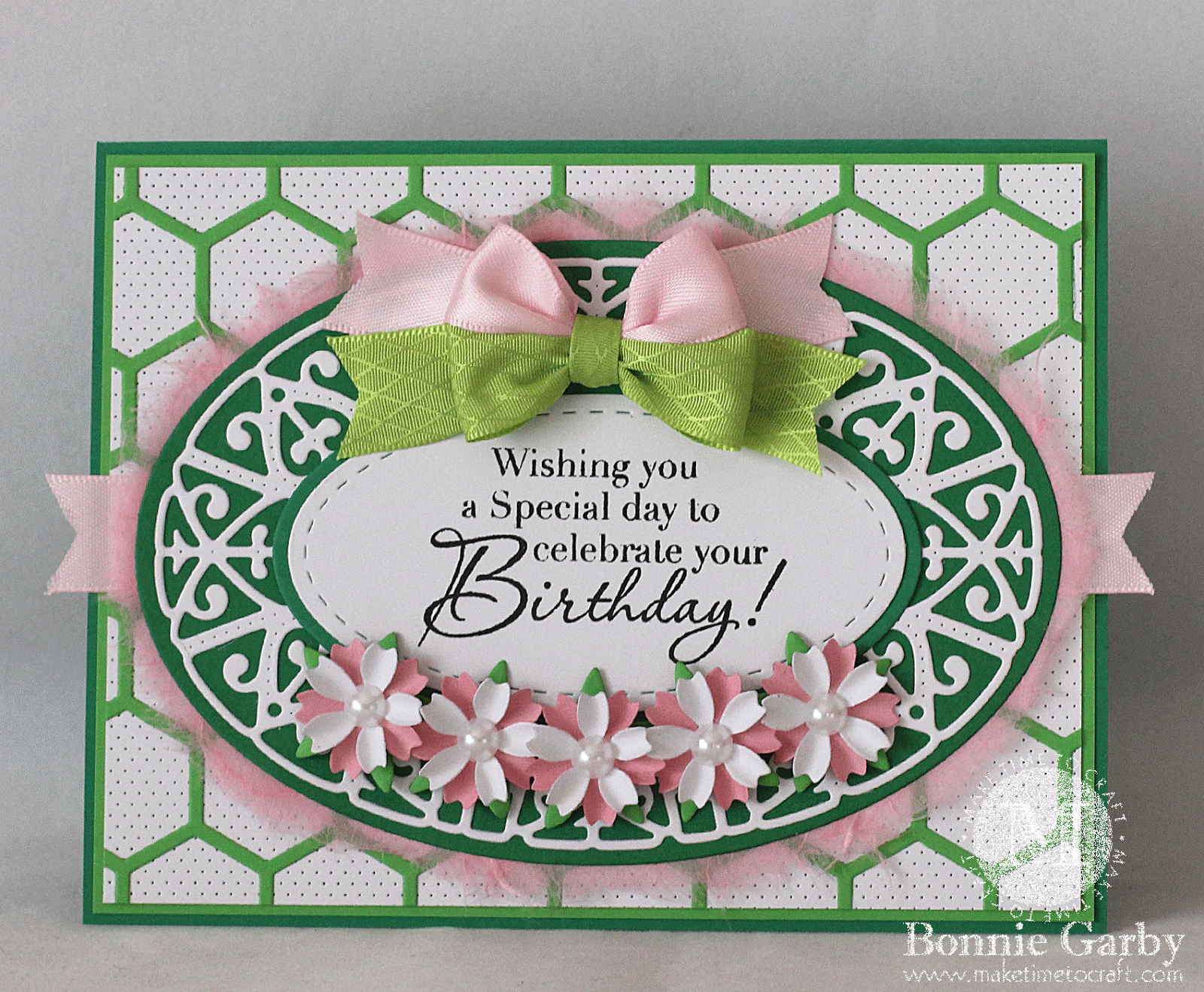 Hi friends. Today I have a card featuring a couple of the ribbons in the RRR March Ribbon Club Assortment and some beautiful dies from Cheery Lynn Designs.