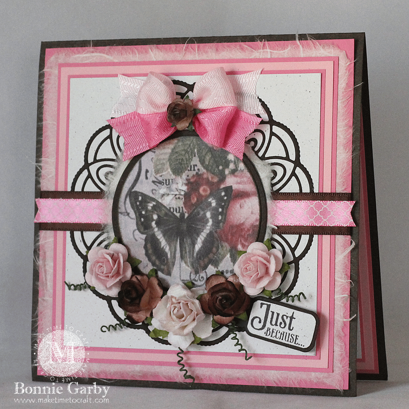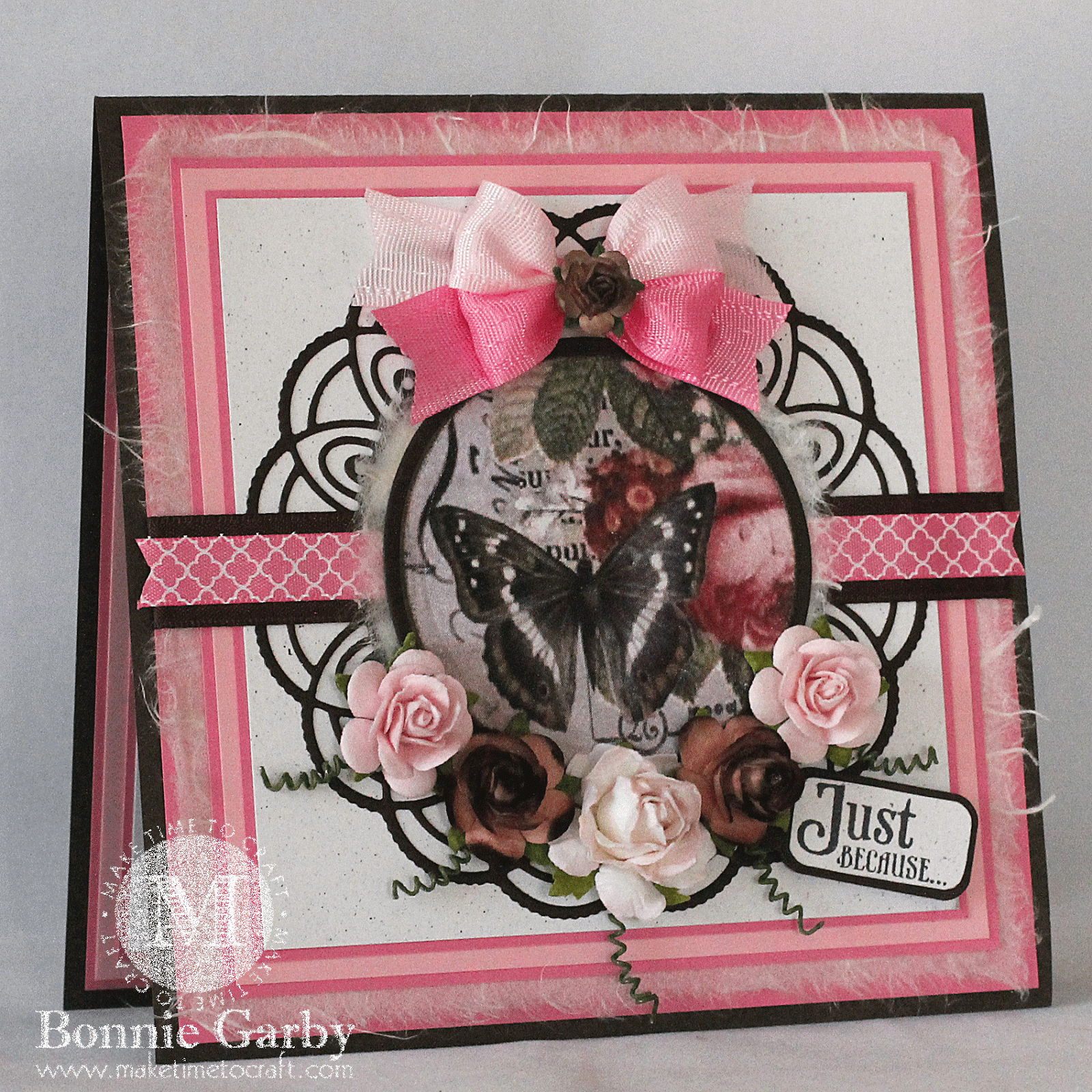 My pretty butterfly image is from the wonderful Butterfly Circles Digital Collage sheet from PollysPaper. This collage sheet has 12 fabulous butterfly circle images for a wide variety of projects. I love having a variety of pretty digital images on hand to pull together cards rather quickly.