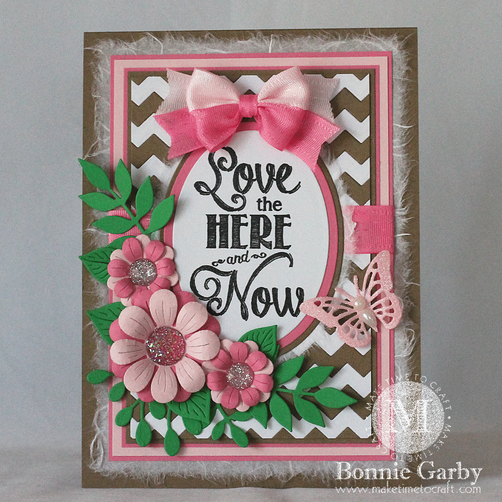 Hi there everyone. Today I’m sharing a card I made featuring the wonderful Chevron A2 Frame and the Floral Bouquet Die Kit from Cheery Lynn Designs. I just LOVE a pink, white and kraft color combo, don’t you?